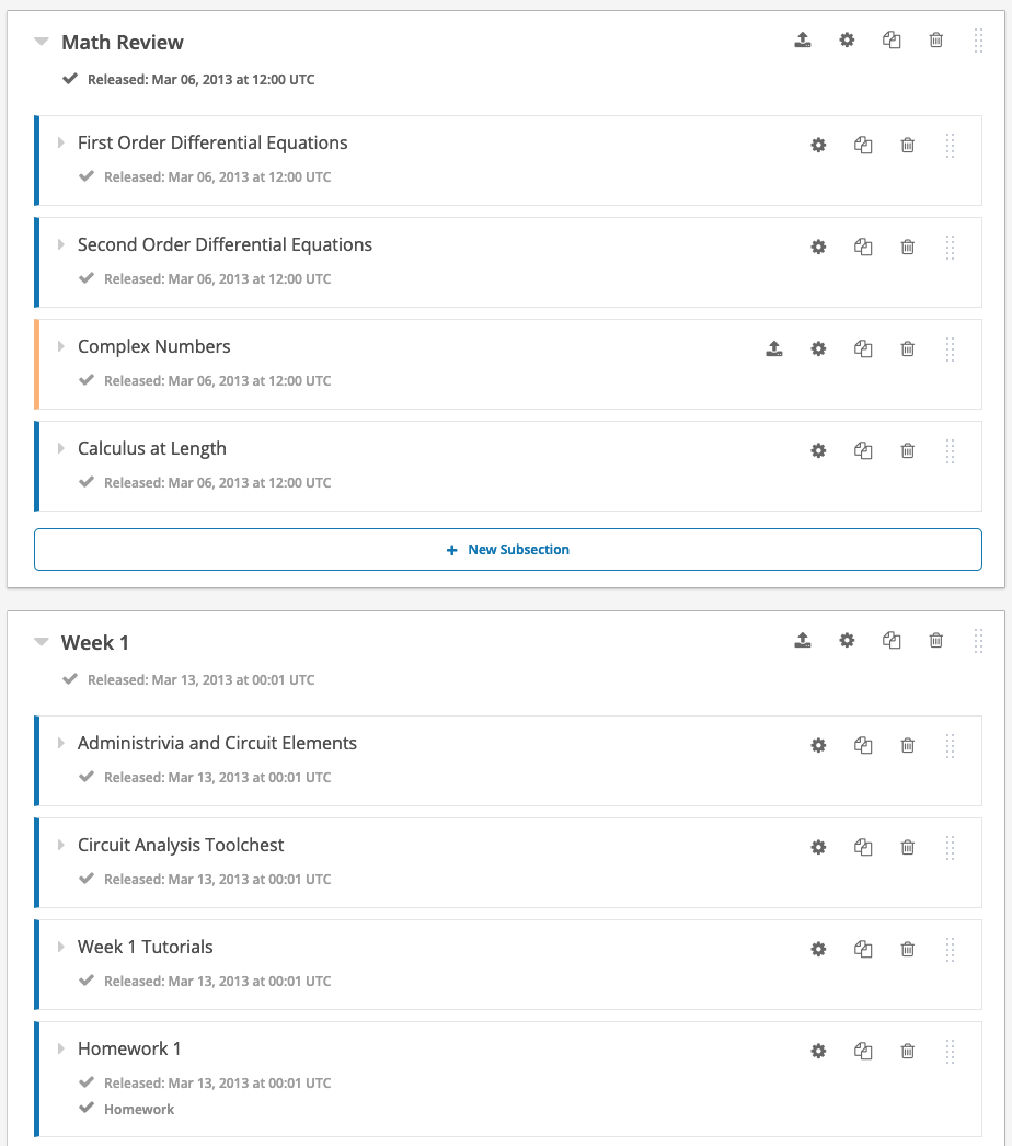 العمود الفقري لمساقك يتمثل في كيفية تنظيمه. يقدمStudioمحررًا للمخطط الكلي، وهو يوفر تسلسلاً هرميًا بسيطًا يتيح السحب والإسقاط بسهولة لمساعدتك و مساعدة طلابك على البقاء في حالة منظمة.